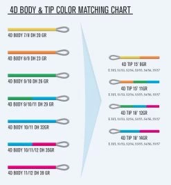 4D Bodies und Tips werden einzeln verkauft, so dass Sie sie nach Ihren Wünschen kombinieren können. Diese Körper arbeiten hervorragend mit unseren 15′ T-Tips zusammen, sind aber auch in Verbindung mit unseren brandneuen 4D Double Density Tips, deren Konizität und Leistung auf unseren Triple Density Linien basiert, hervorragend. 4D-Spitzen gibt es in den Längen 15′ und 18′ und in 4 verschiedenen Gewichten von 9 bis 14 Gramm. Insgesamt gibt es 7 verschiedene Spitzen von Dual Density Floating bis Super Fast Sinking S5/S8 zur Auswahl.